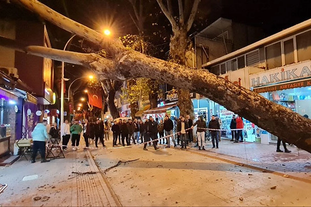 İznik'in Beyler Mahallesi Kılıçaslan Caddesi'ndeki bir çınar ağacı devrildi. Ağacın dalları bir iş yerinin çatısına, başka bir iş yerinin ise camlarına zarar verdi.