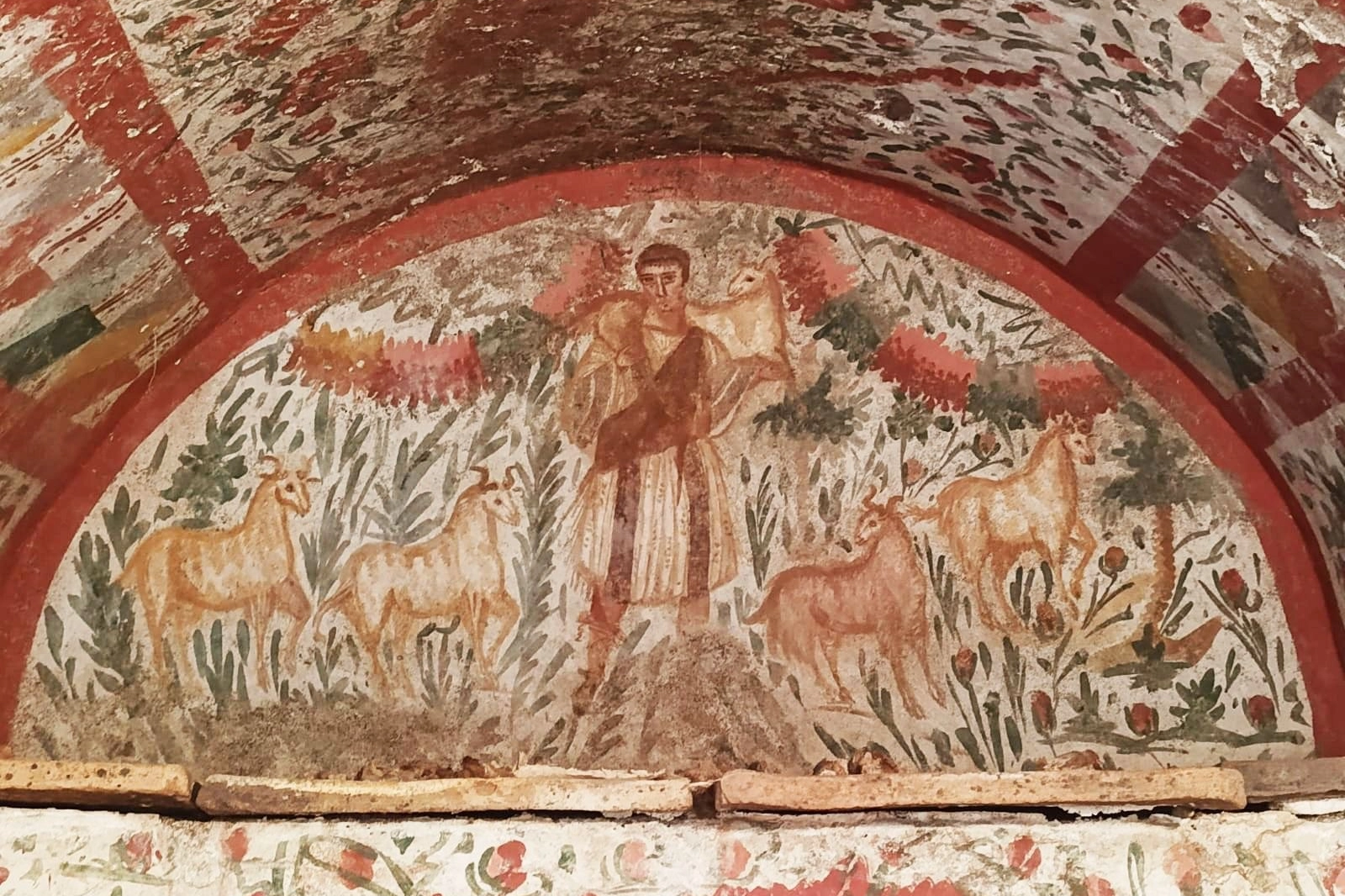 Mezarın kuzey duvarına bitişik klinein pişmiş toprak kare levhalarla kaplı olduğu, ölülerin bu levhaların üzerine yatırıldığı belirlendi. Klinein ardındaki kuzey duvarında ise nadir görülen 'Çoban İsa' figürü dikkat çekti.