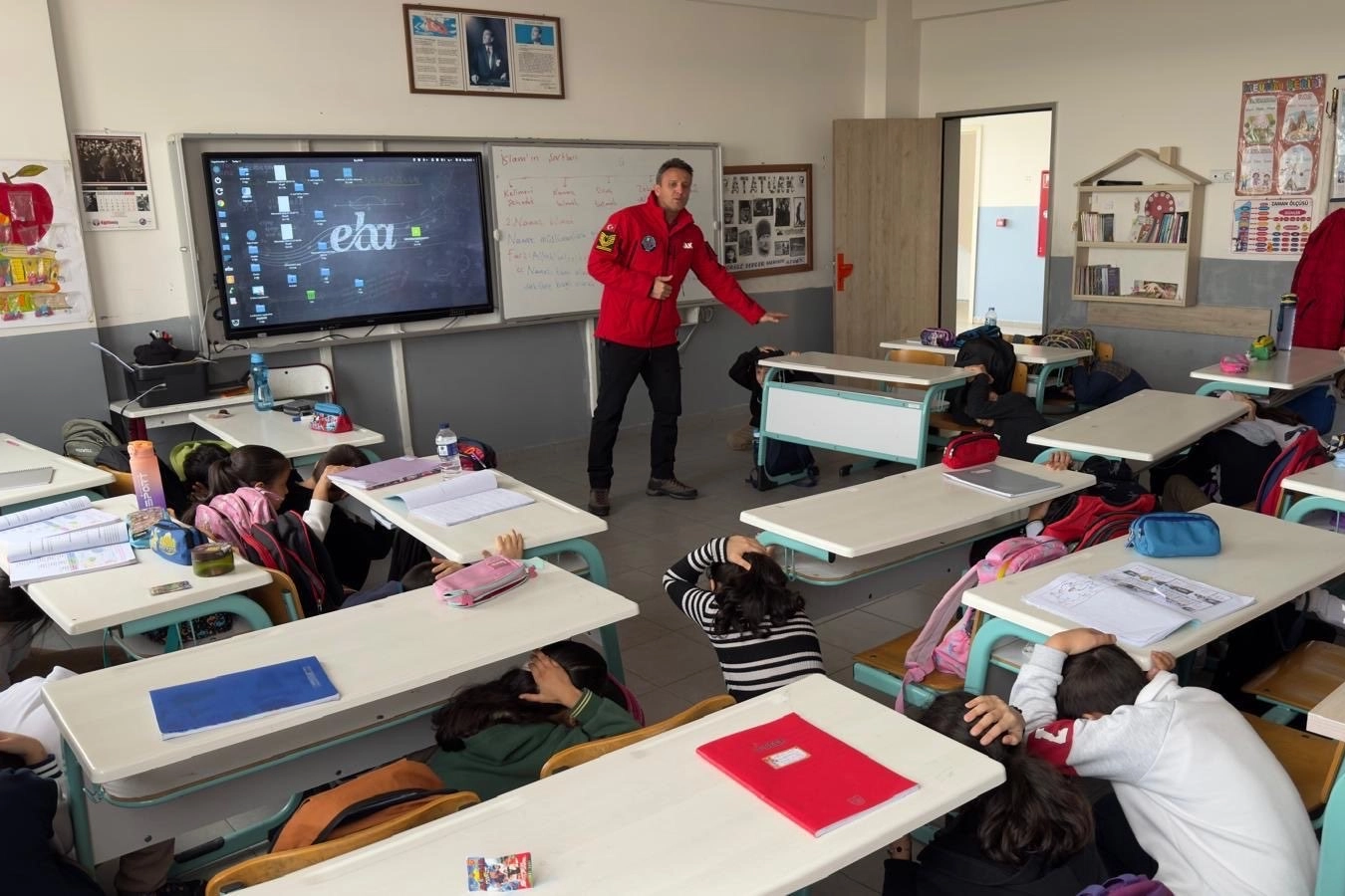 Hamitler Adnan Türkay Ortaokulu ve Hamitler Şehit Göksu Şafak Şahin İlkokulu’nda gerçekleştirilen eğitimlerde jandarma ekipleri, öğrencilere afet bilincinin küçük yaşlarda kazanılmasının önemine vurgu yaparak bilgilendirme faaliyetlerinin devam edeceğini bildirdi.