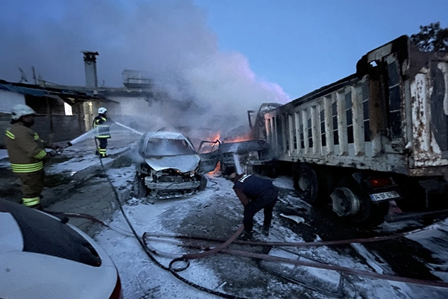 Kazanın ardından alev alan kamyon ve bir minibüsteki yangın, itfaiye ekiplerince söndürüldü.