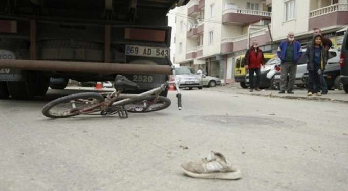 Bursa'nın Orhangazi ilçesinde Zeki K. (64) idaresindeki 69 AD 543 plakalı kamyon, İznik Yolu girişinde manevra yaptığı sırada bisikletiyle kaldırımdan yola inen Suriye uyruklu Ahmet Mehmet'e çarptı.