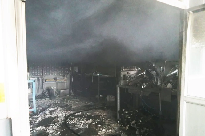 Küçük Sanayi Sitesi'nde Hakan B'ye ait direksiyon tamir atölyesinde henüz bilinmeyen bir nedenle çıkan yangın kısa sürede büyüdü.