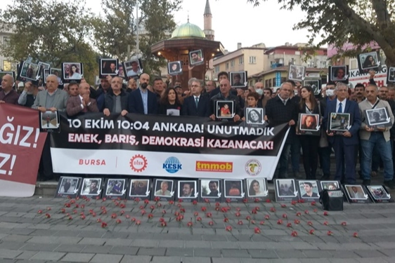 DİSK, KESK, TMMOB, Bursa Tabip Odası, Bursa Demokrasi Güçleri'nin katılımıyla Fomara Meydanı'nda düzenlenen törenle 10 Ekim 2015'te hayatını kaybedenler anıldı. Alkışlı protesto ve sloganlar ile başlayan anmada saygı duruşunun ardından İstiklal Marşı okundu.