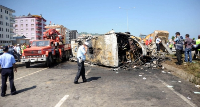 İstanbul'dan Trabzon'un Of ilçesine giden 61 S 0886 plakalı yolcu otobüsü, Karadeniz Sahil Yolu'nun Görele ilçesi Soğuksu Mahallesi mevkisinde trafik uyarı işaretlerine çarpmış, çarpmanın etkisiyle devrilen otobüs alev almıştı. Kazada, yanarak ölenler ve yaralananlar olmuştu.