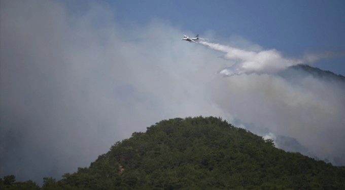 Alevlere ilk müdahale havadan helikopter ve uçaklarla yapıldı.