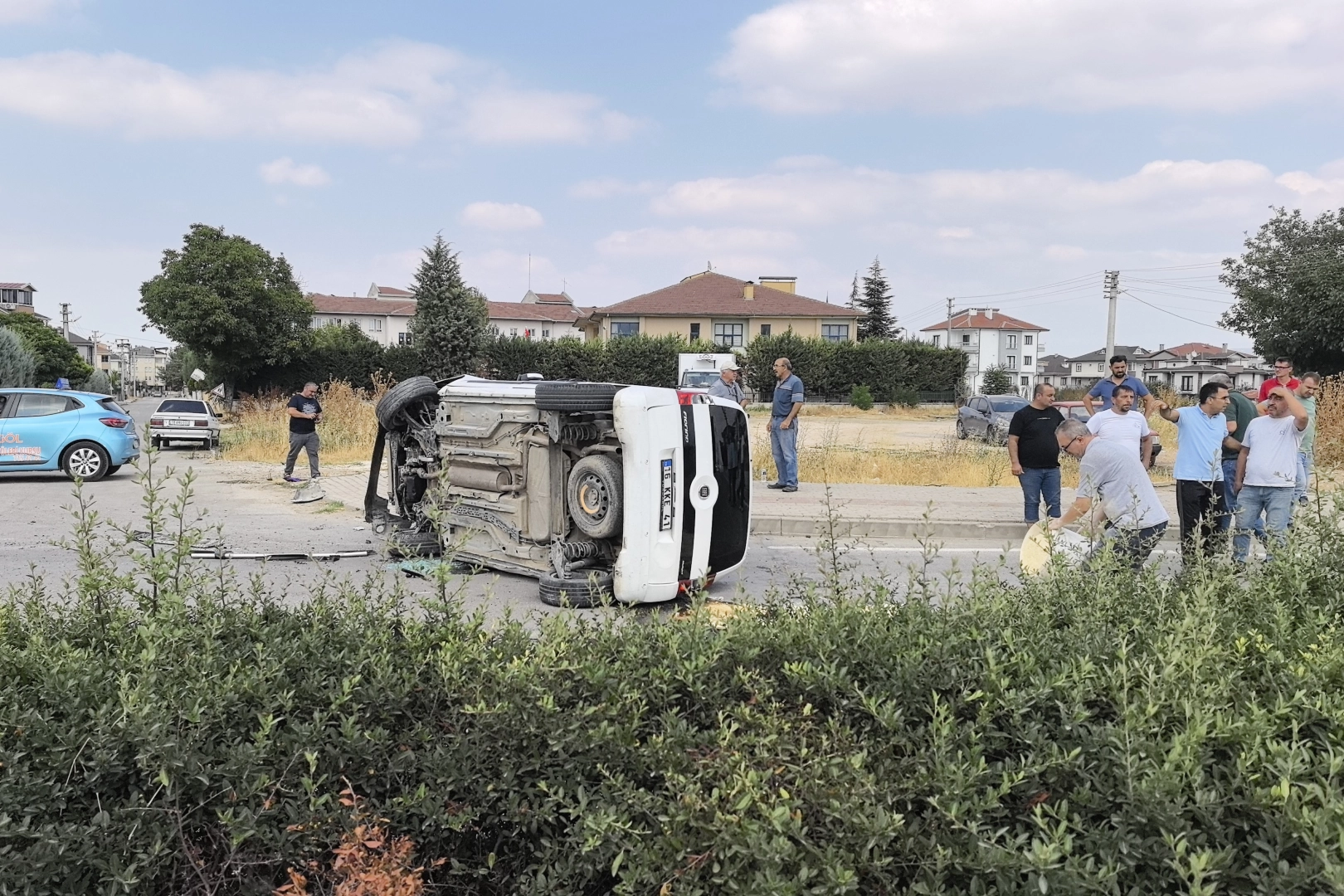 Çevre yolunda seyir halinde olan Nurcan Ş.(21) yönetimindeki 16 KKE 41 plakalı hafif ticari araç, virajda sürücüsünün kontrolünden çıktı ve refüjü aşıp karşı yöne geçerken takla attı. Yan duran araçta sürücü ve yanındaki ablası Nazlıcan Ş. (22) yaralandı.