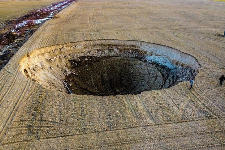 Konya'nın Karapınar ilçesine bağlı Reşadiye Mahallesi Seyit Hacı Yaylası'ndaki tarlada yaklaşık 1400 metrekarelik alanda meydana gelen obruğun, 12 metre derinliğinde ve 37 metre çapında olduğu belirlendi.
