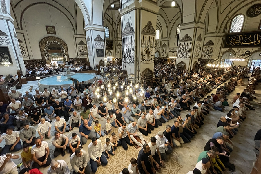 Bursa'da Ulu Cami, Yeşil Cami ile Emir Sultan ve Murad Hüdavendigar camileri başta olmak üzere cemaat, ibadethaneleri doldurdu.