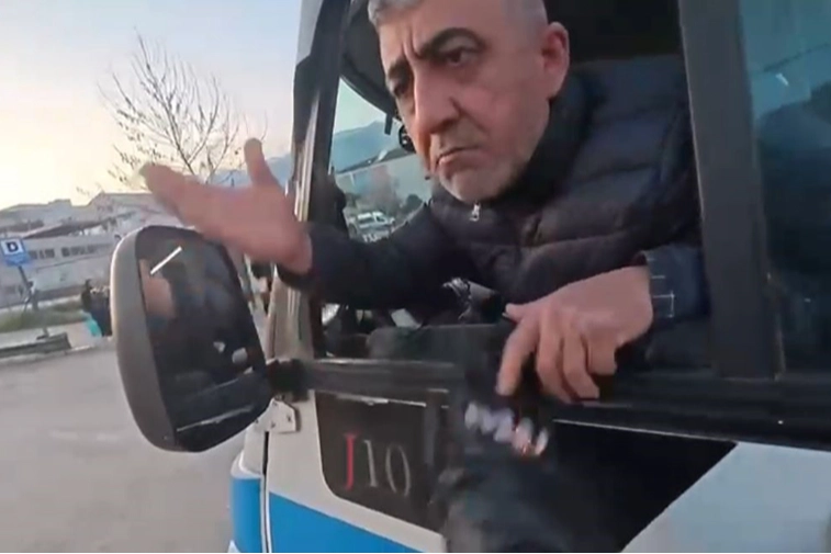 Minibüs şoförü motosikletli gence, "Sen bir bayanın yanında nasıl 'lan' diyorsun, kendine yakıştırıyor musun ?" diyerek tepki gösterdi.