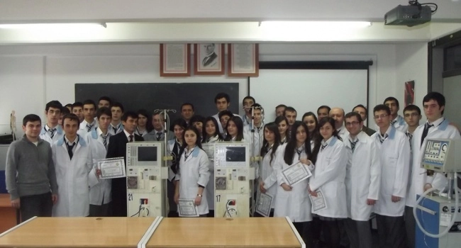 "2011 yılında Fresenius firması tarafından 3 adet diyaliz cihazı okulumuza hibe edildi. Fresenius firmasının Bursa'daki yetkili servisi Mediser Mühendislik tarafından diyaliz cihazlarının kullanımı, teknik özellikleri ve kalibrasyonu ile ilgili öğrencilerimize eğitim veriliyor. Bu kapsamda Bademli Diyaliz Merkezi'ne bir teknik gezi düzenledik. 30 saatlik eğitimler sonunda Mediser Mühendislik firması tarafından öğrencilerimize sertifikaları verildi."