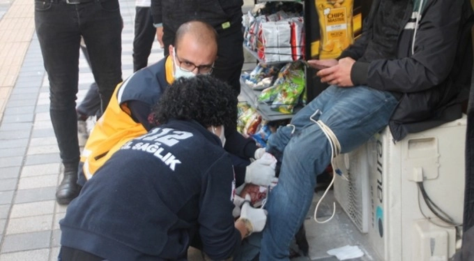 Motosiklet ile olay yerine gelen Z.Ç, marketin önünde duran İ.B'yi iki bacağından yaraladı.