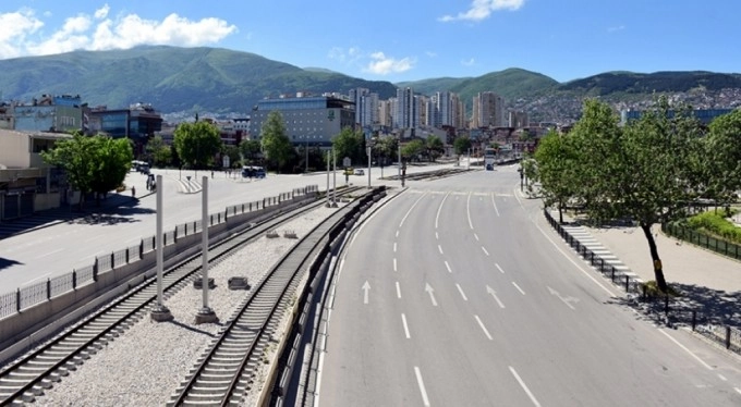 Bursa'da muafiyet kapsamında olup iş yerlerine gitmek isteyenlerin araçları ve işçi servislerinden dolayı sabah saatlerinde polisin denetim noktalarında kısmi yoğunluk yaşanırken, daha sonra cadde, bulvar ve meydanlar sakinliğe büründü.