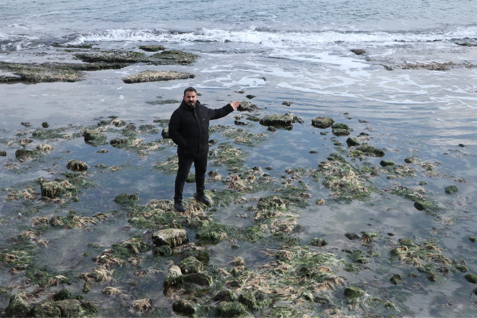 Sahilde yürüyüş yapan Hüseyin Sakalar, her yıl bu mevsimlerde suyun çekildiğini belirterek, "Bu kayalar normalde suyun altında kalıyor. Ama bu mevsimlerde sular çekiliyor. Her sene bu olay oluyor" dedi.