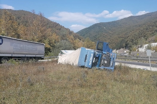 Bursa-Ankara karayolunda seyreden İlhami Sarpkaya idaresindeki 66 AAE 629 plakalı meyve suyu yüklü tır, Mezit 1 mevkisinde kontrolden çıkarak devrildi.