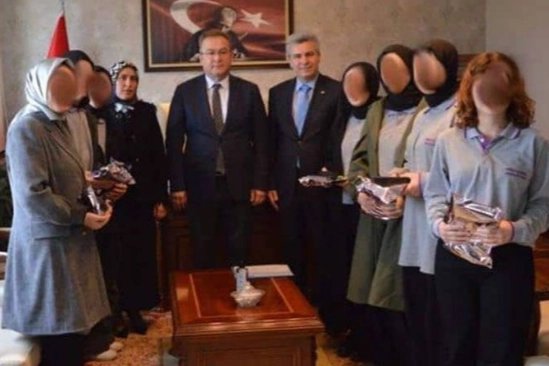 Ziyaret sırasında çekilen fotoğraf Derince İlçe Eğitim Müdürlüğü'nün resmi sosyal medya hesaplarından da paylaşıldı. Fakat paylaşılan fotoğraflarda kız öğrencilerin yüzleri buzlanarak gizlendi.