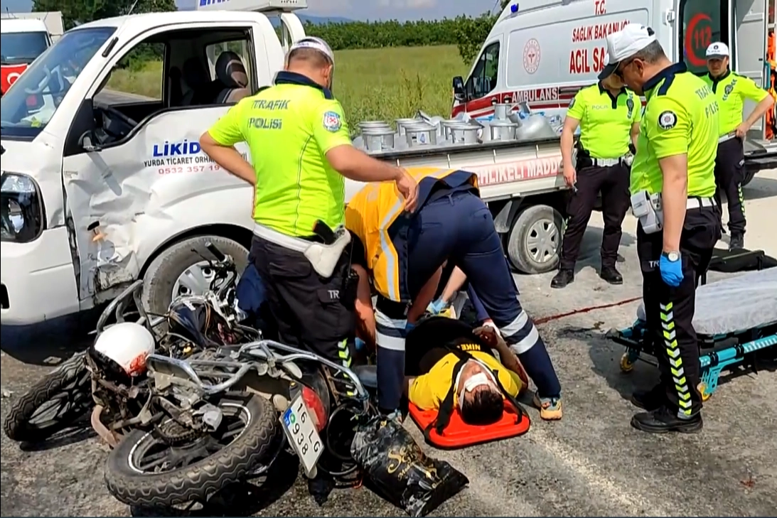 Alınan bilgiye göre, Orhangazi-Yeniköy yolunda seyreden Ramazan Ö. (41) idaresindeki 16 LG 938 plakalı motosiklet, Kemal Y'nin (61) kullandığı 16 VY 852 plakalı tüp yüklü kamyonete yandan çarptı.
