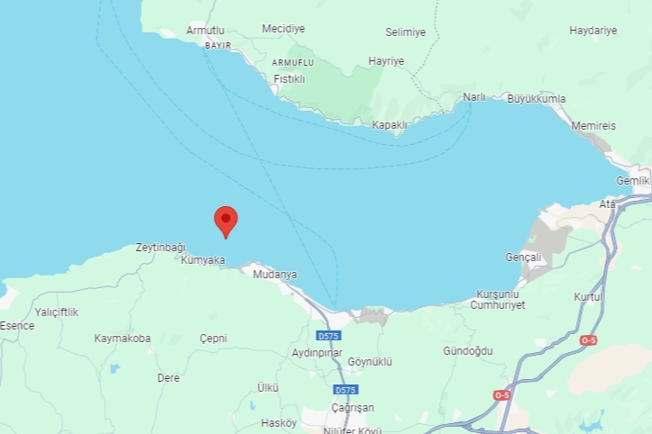 Boğaziçi Üniversitesi Kandilli Rasathanesi kayıtlarına göre, Gemlik Körfezi, Mudanya Kumyaka açıklarında saat 23.04'te 3.9 büyüklüğünde deprem meydana geldi.