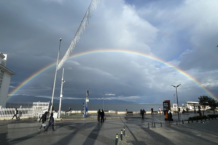 Mudanya'da lodosla birlikte yağan sağanak yağmur sonrasında körfezde oluşan gökkuşağı muhteşem bir görüntü oluşturdu. Vatandaşlar gökkuşağını ilgiyle izledi.