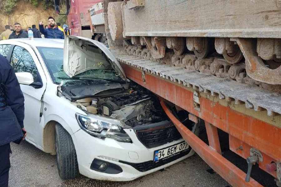 Bursa'nın Mudanya ilçesinde Kumyaka istikametine ilerleyen Besim O. idaresindeki 34 BEM 077 plakalı otomobil karşı yönden gelen Necati B. idaresindeki iş makinesi yüklü 71 DR 903 plakalı tırla çarpıştı.