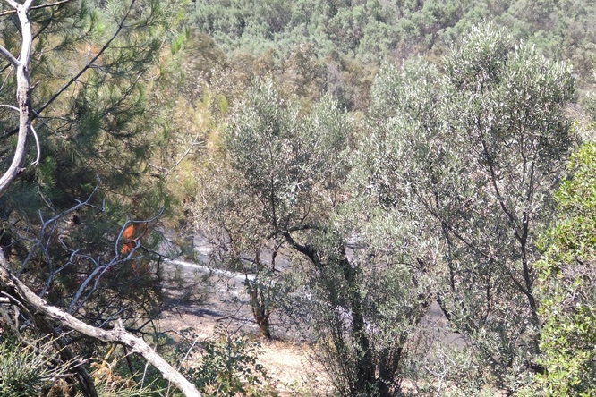 Bursa'nın Mudanya ilçesi Işıklar mevkisindeki zeytinlik alanda henüz bilinmeyen nedenle yangın çıktı.