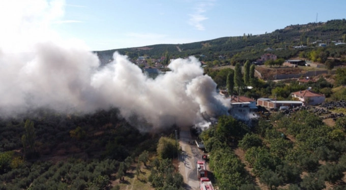 Bursa'nın Mudanya ilçesine bağlı Akköy'de özel bir işletemeye ait açık ve kapalı alanları bulunan lastik deposunda henüz belirlenemeyen nedenle yangın çıktı.