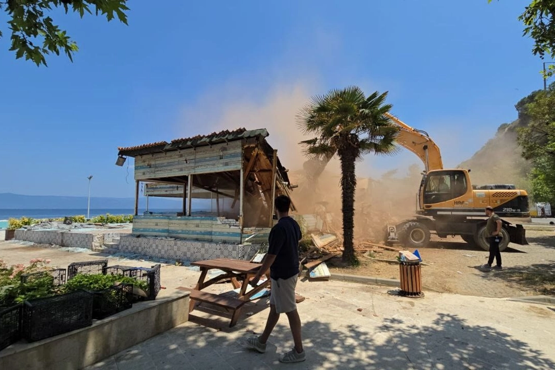 Belediye ekipleri tarafından gerçekleştirilen yıkımda, zabıta ve jandarma ekipleri bölgede geniş güvenlik önlemleri aldı. Daha önce yıkıma karşı basın açıklamaları yapan ve yetkililerle görüşmeler gerçekleştiren işletme sahipleri, karara rağmen yıkımı engelleyemedi. Yıkım sırasında işletme sahiplerinin duygusal anlar yaşadığı görüldü. Kararın uygulamaya alınmasıyla birlikte sahil bandındaki dört yapı tamamen kaldırılacak.