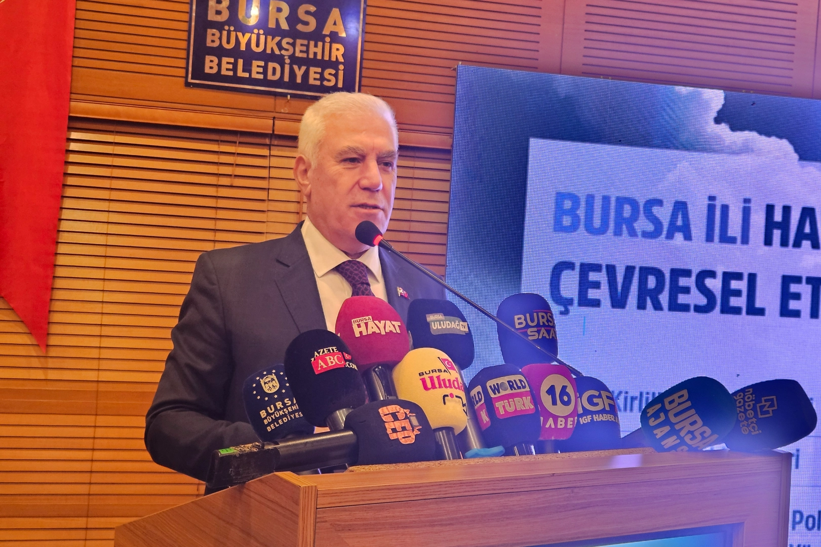 İğneyi de bir taraftan kendimize batırıyoruz. Havayla ilgili konuşacağız ama suyla ilgili bir hatırlatma yapmak istiyorum. Yılların ihmali, yılların düşüncesizliği karşısında Nilüfer Çayını kirletenlerden biri de biziz, BUSKİ. Yapıldı denilen yerlerin yapılmaması, çöp suyunun halen daha, biz önledik onu 4 ay önce ancak çözdük. Gördük ki kirleticilerin başında biz varız. Biz eğer sanayiciden, esnaftan, kaçak deşarj yapanları sorumlu tutacaksak önce kendimiz sorumlulukları yerine getirmiş ve tamamlamış, kendimiz kirletici olmaktan çıkmamız gerekir. 2026'nın sonunda büyük oranda BUSKİ atık suları artık Nilüfer Çayı'na bırakmayacak düzeye gelecek. Özlüce'nin dahi atıklarının Ayvalıdere'ye akıtıldığını iki ay önce öğrendim. Ovaakça Bölgesinin bütün atığı Nilüfer Çayı'na gidiyor. Onlarla ilgili projeleri hazırladık, inşaatlarına başlayacağız.