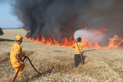 Kontrol altına alınan yangın söndürüldü ancak tonlarca buğday telef oldu.