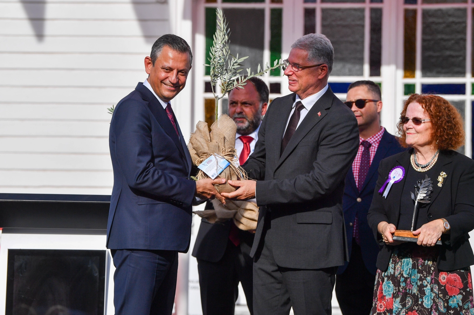 Mütareke Evi Müzesi'nde gerçekleştirilen “Tarih Yapan İnönü” sergisinin ziyaret edilmesinin ardından, CHP Genel Başkanı Özgür Özel, Mudanya Belediye Başkanı Deniz Dalgıç ve protokol üyeleri, barışın simgesi zeytin yapraklarından hazırlanan çelengi denize bırakarak, Mudanya'dan tüm dünyaya barış çağrısı yaptılar.