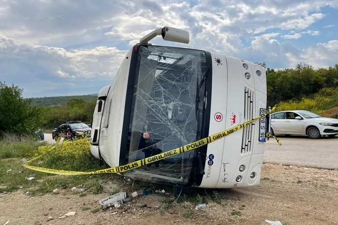 Çarpışmanın etkisiyle devrilen midibüsün sürücüsü ile aynı araçta bulunan ve Kayapa Ortaokuluna giden 22 öğrenci yaralandı.