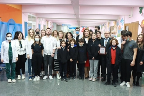 Öğrenciler, yaklaşık 50 bin lira toplayarak aldıkları elektrokardiyografi (EKG), nebulizatör ve otoskop cihazlarını hastanenin Çocuk Sağlığı ve Hastalıkları Kliniğine teslim etti.