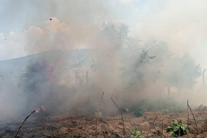 Bursa'nın Orhaneli ilçesine bağlı Gümüşpınar Mahallesi'nde çıkan anız yangını, rüzgarın etkisiyle yayıldı.