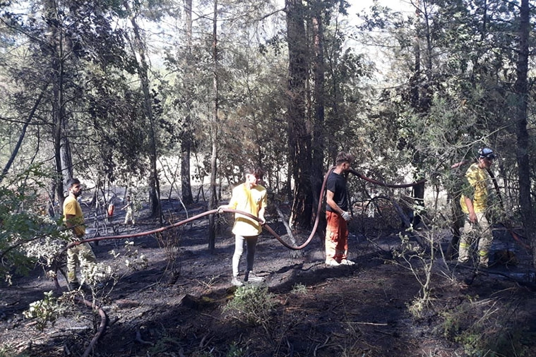 Sadağı Kanyonu yakınındaki alanda etkili olan yangını erken ve etkin müdahaleyle büyümeden yaklaşık yarım saatte söndüren ekipler, soğutma çalışması yaptı.