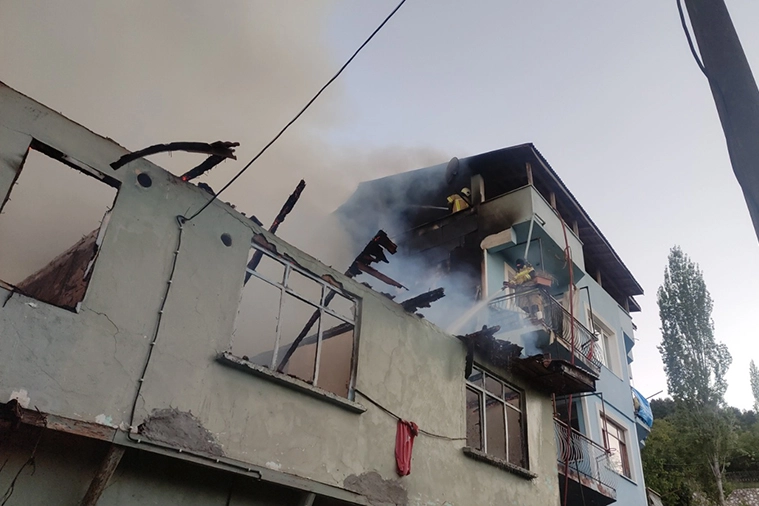 Evden dumanların yükseldiğini gören mahalle sakinlerinin ihbarıyla olay yerine itfaiye, jandarma ve 112 Acil Sağlık ekibi sevk edildi.