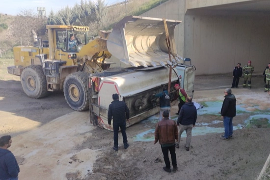 Tanker, bölgedeki bir maden ocağından gelen kepçenin yardımı ile kaza yerinden kaldırıldı.