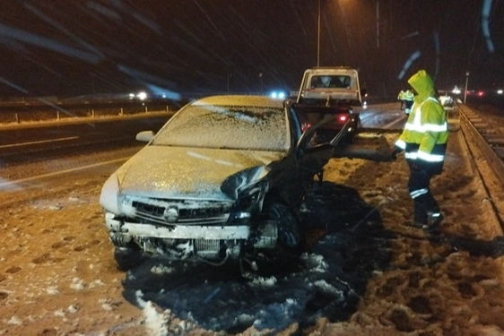 İstanbul-İzmir Otoyolunda oluşan trafik kazasında iki araç kar ve buzlanmadan dolayı yoldan çıkarak birbirine çarptı. Kazada iki araç sürücüsü yaralandı.