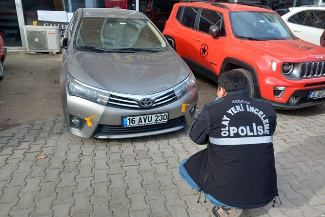 Orhangazi ilçesi Muradiye Mahallesi Turist Yolu Caddesi'nde bir oto galerinin önüne plakasız otomobille gelen zanlılar, bu iş yerine doğru silahla ateş açarak kaçtı.