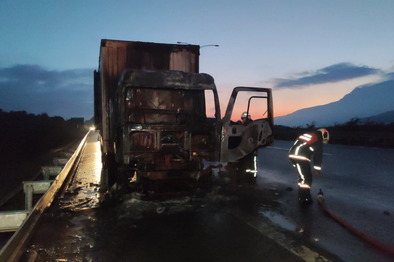 İstanbul-İzmir Otoyolu seyreden Muhlis Koçu (65) idaresindeki 41 K 6272 plakalı kamyonda, Karsak Kavşağı mevkisinde henüz bilinmeyen nedenle yangın çıktı.