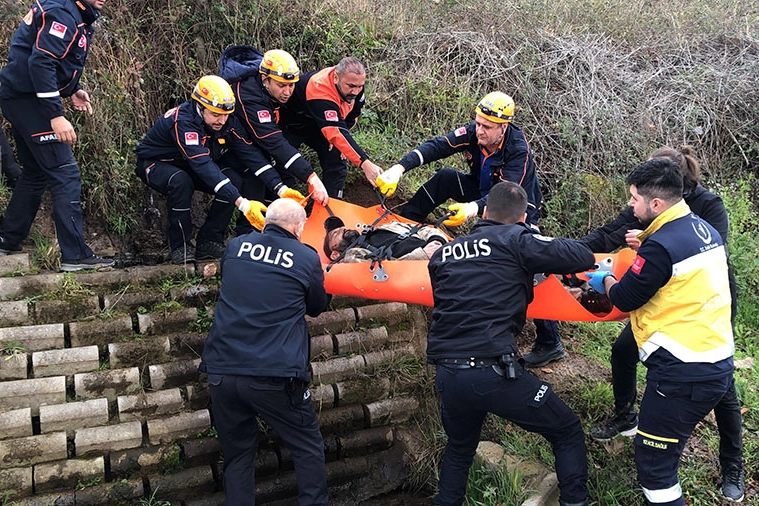 Ayağı burkulduğu için yürüyemeyen Çetin'in, yakınlarını arayıp yardım istemesinin ardından bölgeye AFAD ve polis ekipleri sevk edildi.