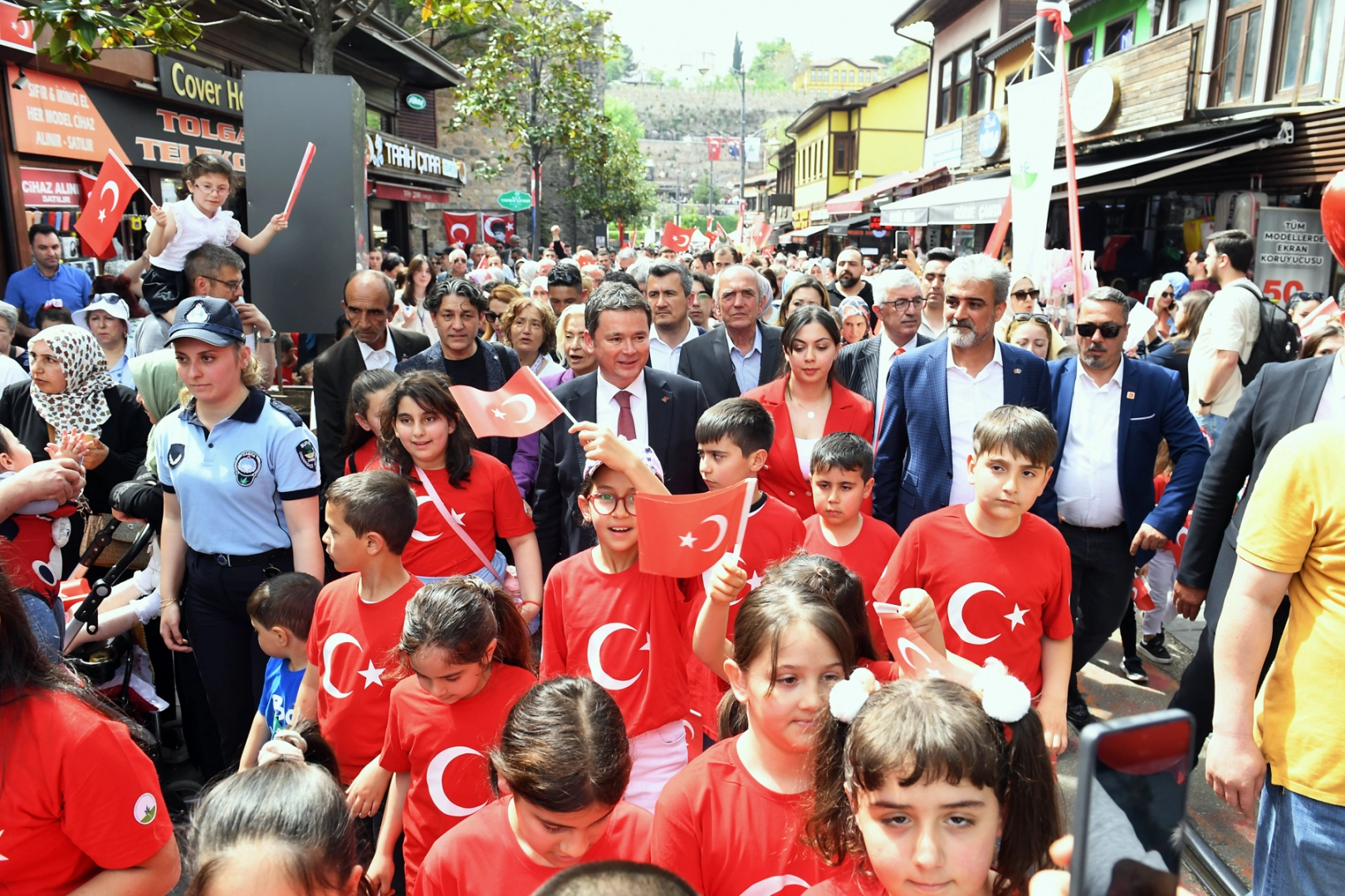 Sadi Etkeser İlkokulu öğrencilerinin bando ve halk oyunları gösterisinin ardından marşlar eşliğinde kortej yürüyüşüne geçildi. Başkan Erkan Aydın, çocuklar ve aileleriyle birlikte Zafer Plaza Meydanı’ndan Cumhuriyet Caddesi boyunca çocuk bandosu eşliğinde marşlar söyleyip, ay yıldızlı bayrakları sallayarak coşkulu bir yürüyüş gerçekleştirdi. Esnaf ve vatandaşların da büyük ilgi gösterdiği kortej yürüyüşü Abdal Meydanı’nda son buldu.