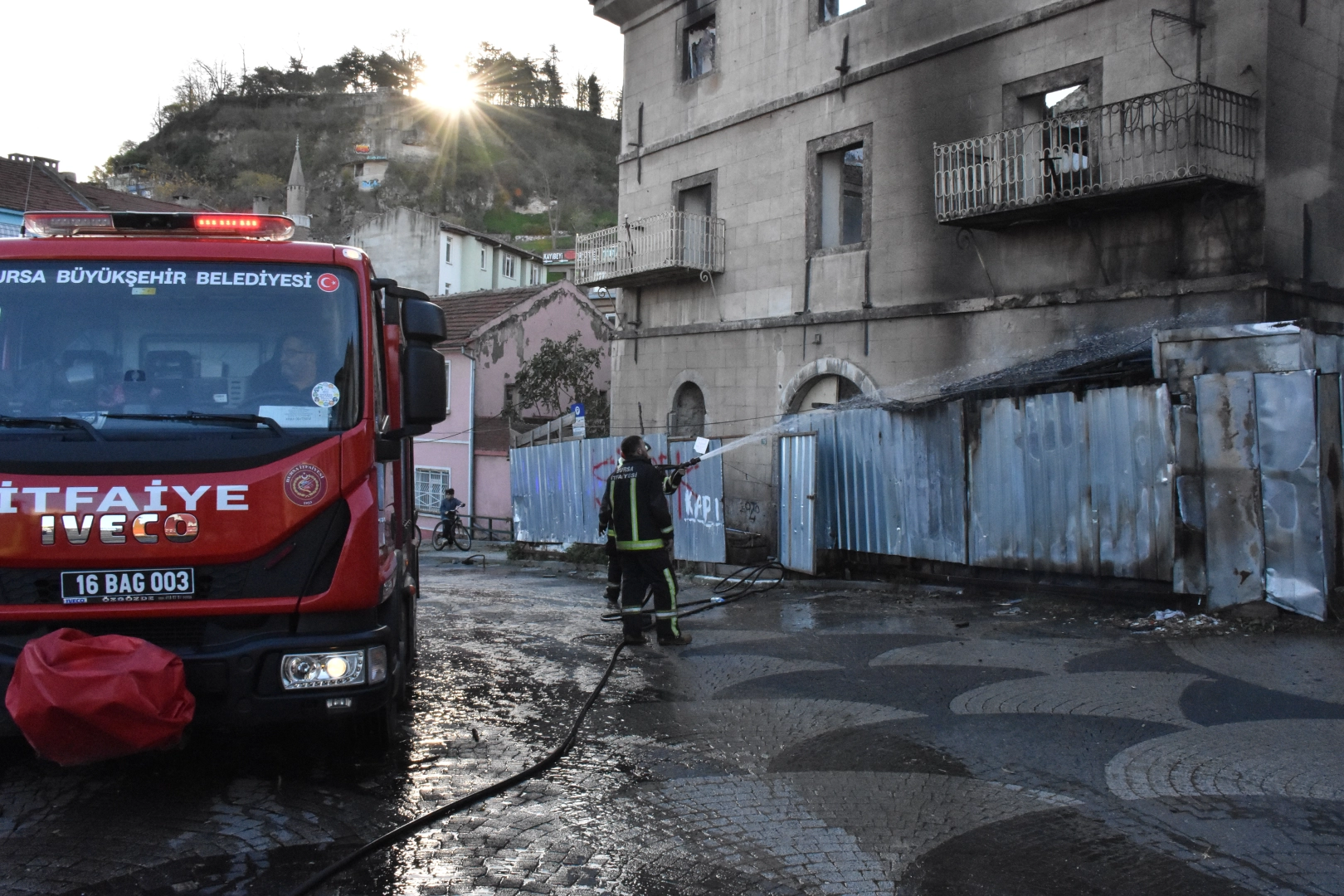 Bursa'nın merkez Osmangazi ilçesinde Yahşibey Mahallesi 2. Murat Caddesi'ndeki 3 katlı metruk binanın önünde bulunan barakada henüz bilinmeyen nedenle yangın çıktı.