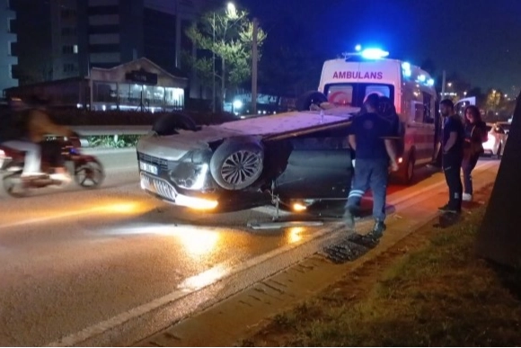 Bursa’nın Osmangazi ilçesinde saat 01.00 sıralarında Sanayi Caddesi'nin Ankara istikametinde, U.T. yönetimindeki 16 TBE 53 plakalı otomobil ile Y.S. idaresindeki 16 BDJ 544 plakalı otomobil henüz bilinmeyen bir nedenle çarpıştı. Şiddetli çarpışmanın etkisiyle 16 TBE 53 plakalı araç kontrolden çıkarak takla attı.