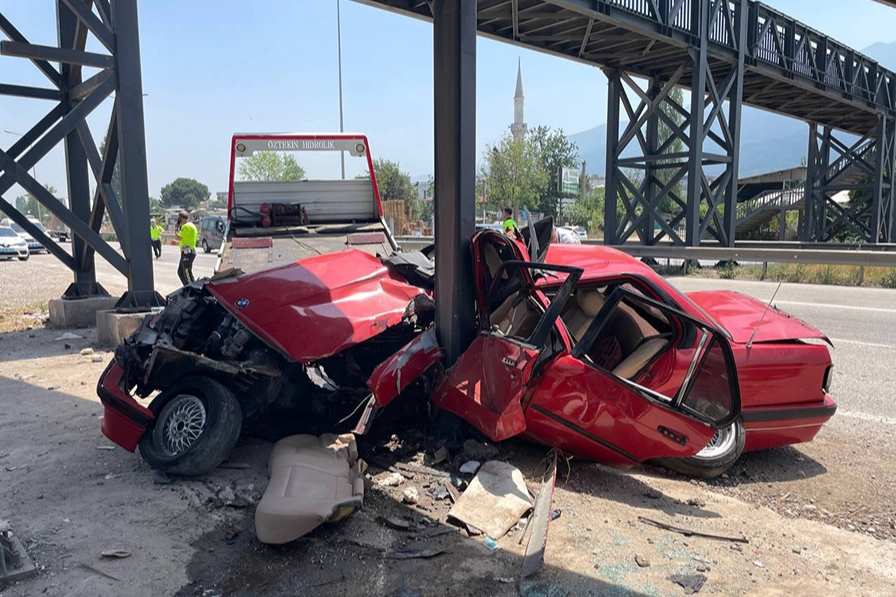Alınan bilgiye göre, Ersin Ö. idaresindeki BDD 626 plakalı otomobil, Yıldırım ilçesi 11 Eylül Bulvarı'nda seyrederken, sürücünün kontrolü kaybetmesi sonucu hızla üst geçidin ayaklarına çarptı.