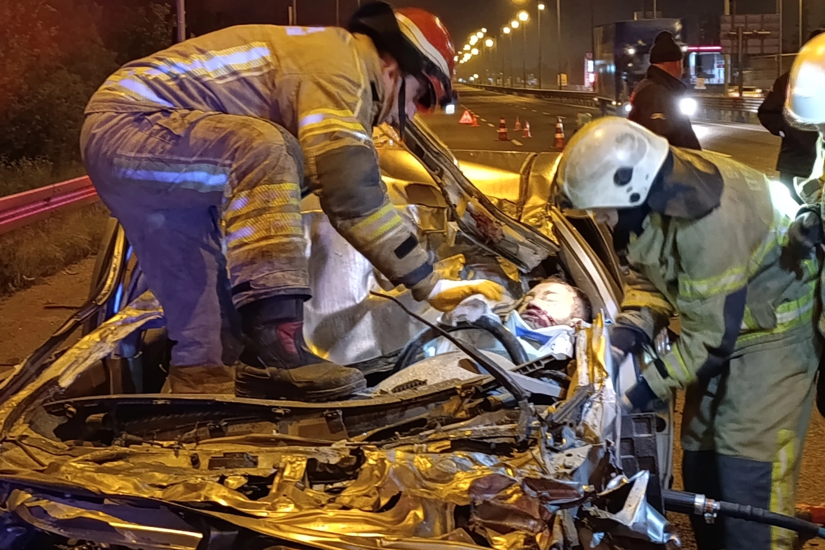 Kaza, saat 02.00 sıralarında Bursa-Ankara Karayolu üzeri İnegöl girişinde meydana geldi. İnegöl'den Bozüyük istikametine seyir halinde olan sürücü Muhammed Can (23) yönetimindeki 16 K 4822 plakalı otomobil, Kulaca Mahallesi mevkiindeki Karayolları Denetim İstasyonu'na giriş yapmak için yavaşlayan Sürücü Adil H.(31) yönetimindeki 31 ADH 871 plakalı kamyona arkadan çarptı. Otomobil, şiddetli çarpmanın etkisiyle kamyonun altına girdi. Kaza sonucu otomobilin sürücüsü hurdaya dönen araçta sıkıştı. Kaza yerine 112, Jandarma ve İtfaiye arama kurtarma ekipleri sevk edildi. İtfaiye ekipleri sıkışan sürücüyü yoğun çalışma sonucu kurtardı. Ağır yaralanan genç, hastanede tedavi altına alınırken, kamyonun sürücüsü ifadesi alınmak üzere karakola götürüldü.