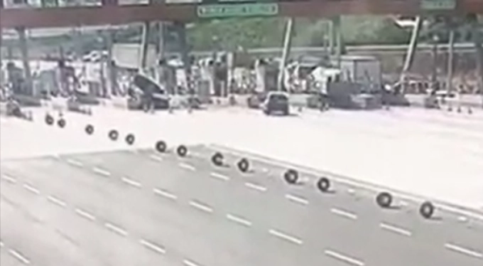 Öte yandan, süratle ilerleyen aracın gişelerde bulunan bariyerlere çarpması güvenlik kamerası görüntülerine yansıdı.