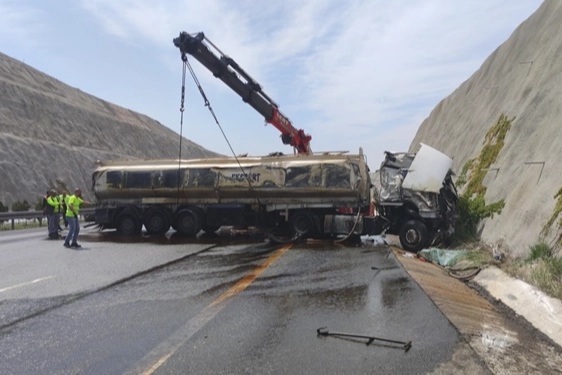 Bursa'nın Orhangazi ilçesinde Ali Öner (51) idaresindeki 01 AEF 712 plakalı çimento malzemesi taşıyan tanker, İstanbul-İzmir Otoyolu'nun Karsak Kavşağı mevkisi yakınında kontrolden çıkarak Barış Başkan'ın (38) kullandığı 24 DHV 47 otomobile çarptı.
