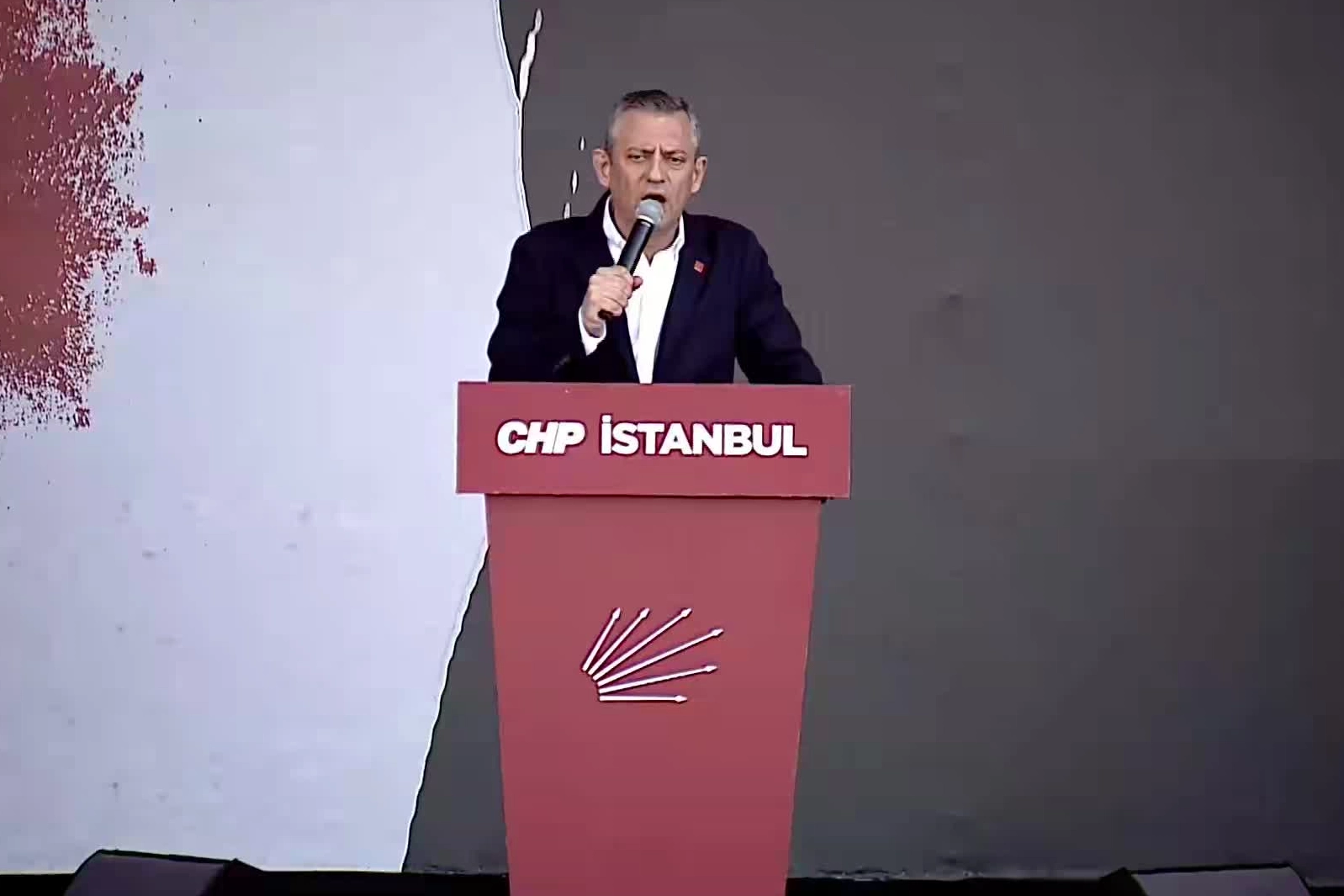 CHP Genel Başkanı Özel'in konuşması devam ederken, alanda bulunan led ekranlara mitingi vermeyen televizyon kanalları yansıtıldı.
