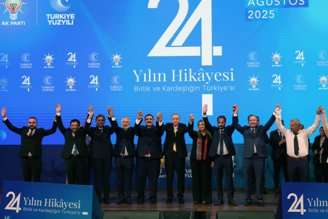 Cumhurbaşkanı ve AK Parti Genel Başkanı Recep Tayyip Erdoğan, partisinin 24'üncü kuruluş yıl dönümü dolayısıyla düzenlenen programda aralarında CHP'den istifa ederek AK Parti'ye katılan Aydın Büyükşehir Belediye Başkanı Özlem Çerçioğlu'nun da olduğu belediye başkanlarına rozetlerini taktı.