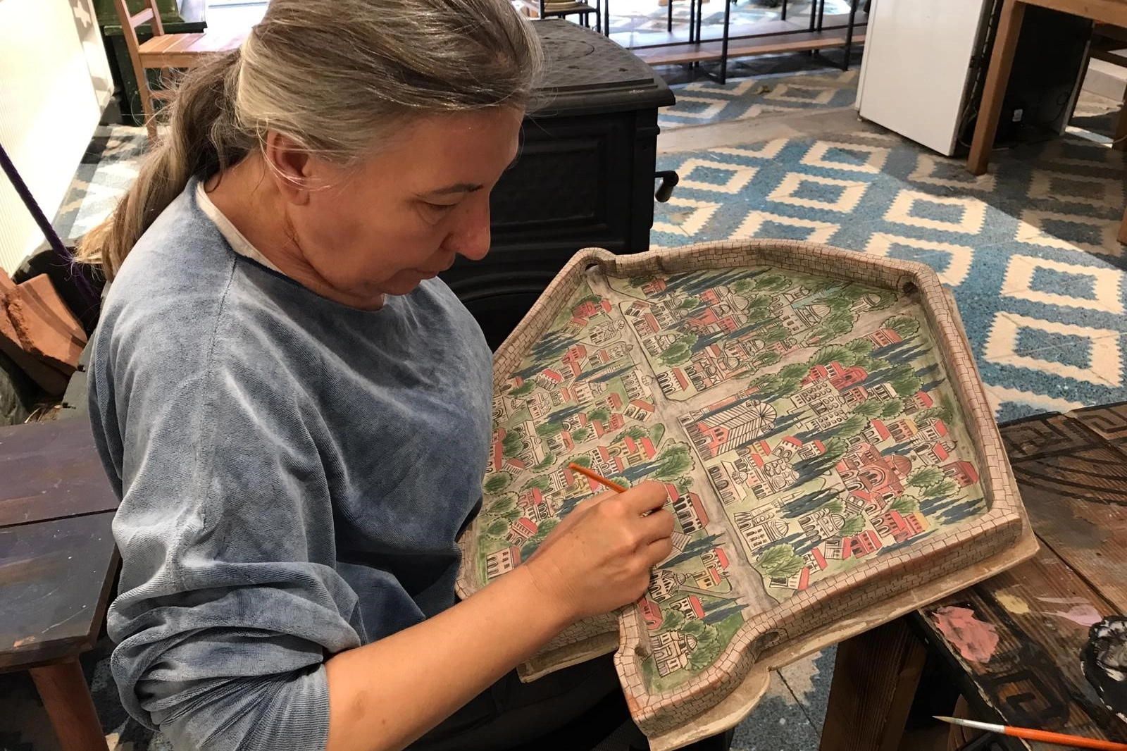 Kültür ve Turizm Bakanlığı'nın ‘Somut Olmayan Kültürel Miras Taşıyıcısı' unvanına sahip Künen'in hazırladığı minyatür çalışmada, kentin simgesi hâline gelmiş tarihi yapılar, İznik surları, anıtsal kapılar ve kentin kültürel dokusunu temsil eden önemli noktalar yer alıyor. El emeği göz nuru bu özel eser, geleneksel İznik çini sanatının modern bir yorumla aktarıldığı nadide bir örnek.