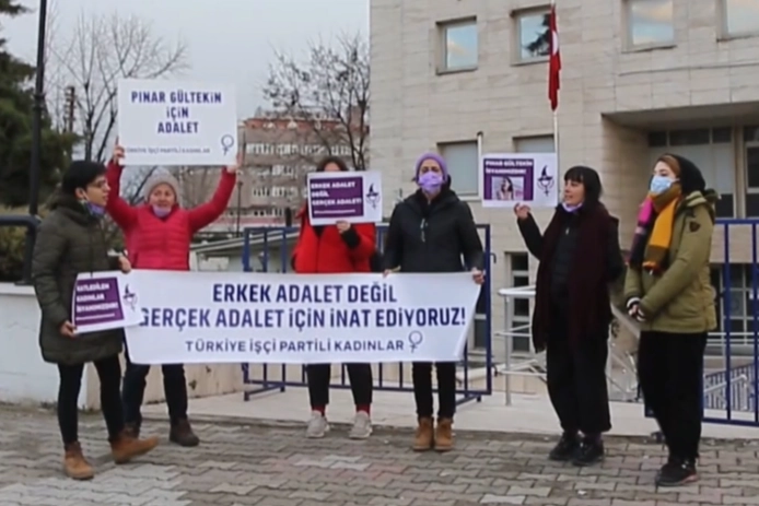 Öte yandan Kadın Cinayetlerini Durduracağız Platformu ve bazı kadın dernekleri, adliye önünde Pınar Gültekin'in fotoğrafları ile kadın cinayetlerini protesto etti.